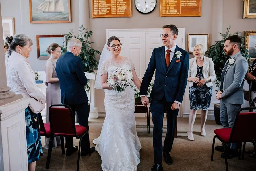 This was one of the rare occasions I was photographing a wedding by myself and without a second shooter, so once Aimee was in her dress I hastily made my way to the Shire Hall to meet up with Matt, and capture some of the guests arriving. The Shire Hall is a lovely historical building in the town centre, and we all packed into the ceremony room to await the arrival of the bride. It’s always a nervy time just before the ceremony kicks off, and I enjoyed capturing Matt trying to suppress his emotions as Aimee arrived at the top of the aisle.