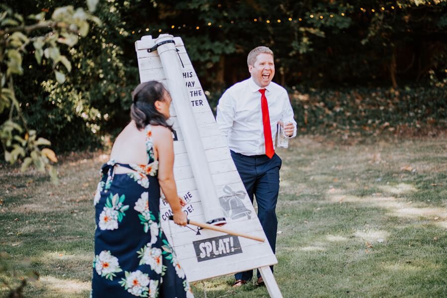 After confetti and a few quick snaps outside the Shire Hall, we all headed back to Matt’s parents’ house about 5 minutes away, where a large tipi was set up in the garden, beautifully styled with assorted gin bottles and flowers, alongside a cheeky little bar serving some very tempting drinks in the afternoon sun. Beyond the tipi, Aimee and Matt had set up garden games, accompanied by festoon lights criss-crossing overhead.