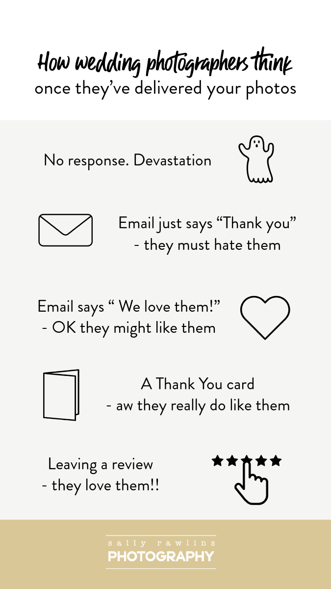 OK I’m only joking about this (well, half joking). No seriously, if you want to give your wedding supplier a massive thank you present that costs nothing, here are three easy things you can do for FREE: